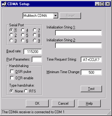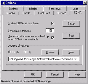 CDMA Options tab in ClockWatch allows the user to set how often the